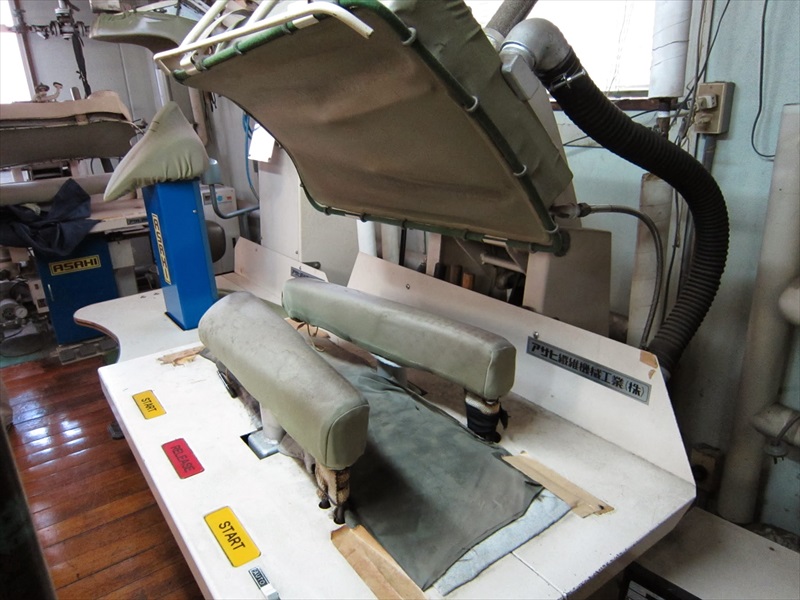 この機械でプレスをされた服はフィット感や着こごちをUPする事間違いなしです。