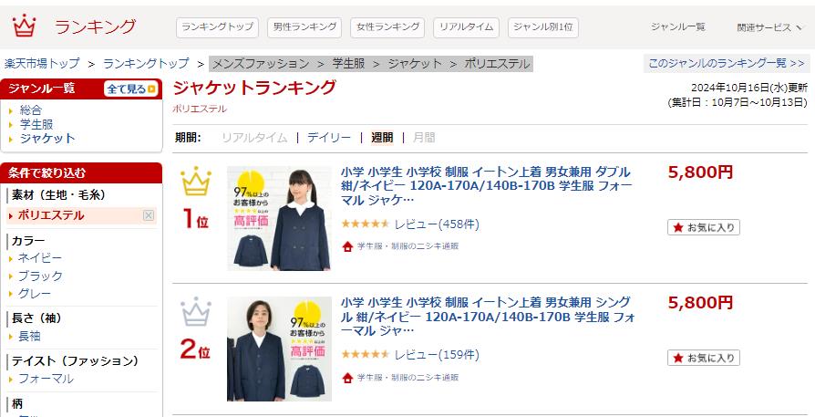 楽天市場トップ > ランキングトップ > レディースファッション > 学生服 > ジャケット