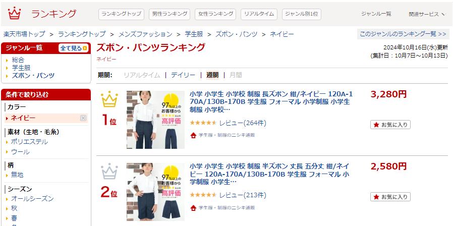 ランキングトップ > メンズファッション > 学生服 > ズボン・パンツ > ネイビー