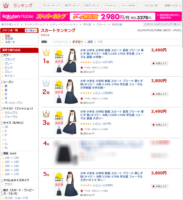 ランキング2023年4月3日